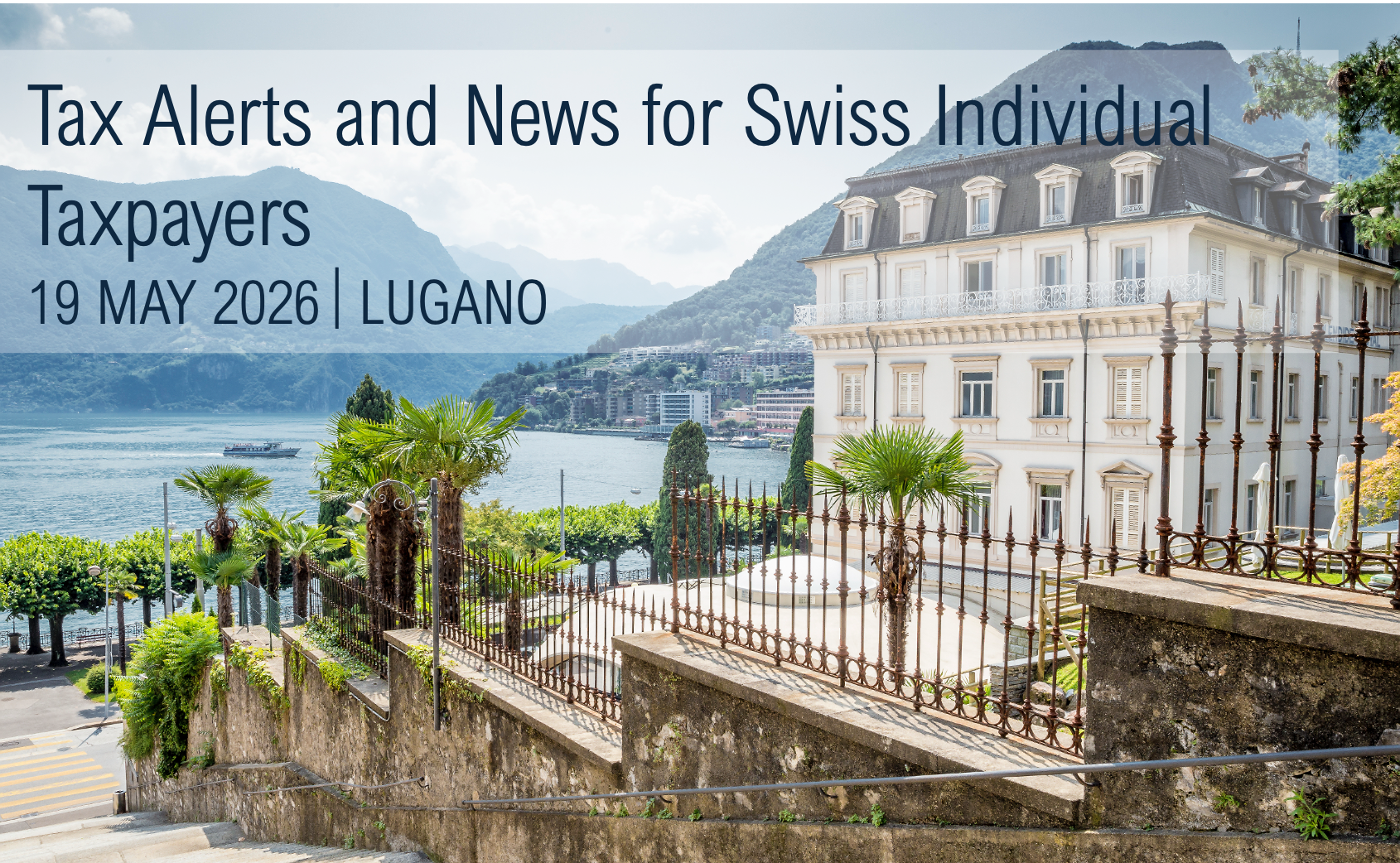 Tax Alerts and News for Swiss Individual Taxpayers – Lugano 19. May 2026 17:00 - 19:00 Steimle & Partners Consulting SAVia Dogana Vecchia 2, 2nd Floor, 6900 Lugano